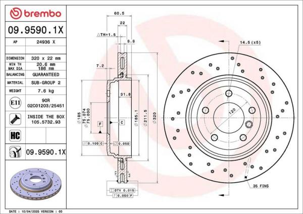 General Information : The specific drilling of Brembo Xtra brake discs<br>provides a brilliant and efficient performance in<br>any braking condition, to emphasise the driving style<br>of true enthusiasts.
