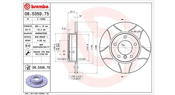 Outer diameter [mm] : 286