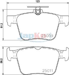Fitting Position : Rear Axle Length [mm] : 123 Height [mm] : 61,2 Height 1 [mm] : 56,2 Thickness [mm] : 16 WVA Number : 25009 WVA Number : 25011 for OE number : 3Q0698451 Brake System : ATEZastosowanie własne
