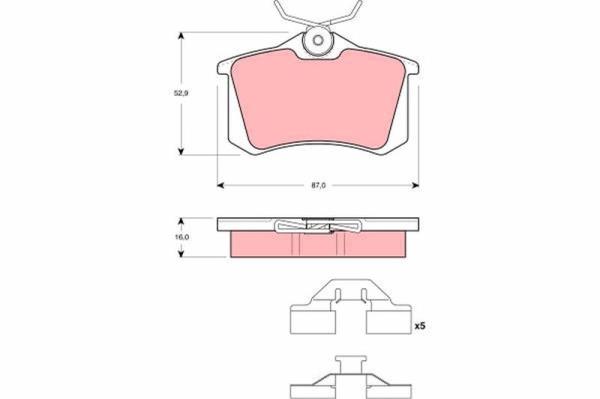 Manufacturer Restriction : TRW Wear Warning Contact : not prepared for wear warning indicator Test Mark : E9 90R- 01120/457 Height [mm] : 52,9 Width [mm] : 87 Thickness [mm] : 16 SVHC : No information available, please contact the manufacturer!Zastosowanie własne