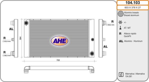 Radiator, engine cooling AHE 104.103