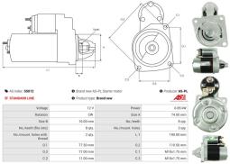 Voltage [V] : 12 Rated Power [kW] : 0,85 Number of mounting bores : 3 Rotation Direction : Clockwise rotation Number of Teeth : 8 Quality : STANDARD LINE New part without depositZastosowanie własne