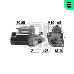 Manufacturer: ERA Voltage [V] : 12 Rated Power [kW] : 1,3 Number of Teeth : 9 Plug Type ID : 30-50 Rotation Direction : Clockwise rotation Flange Diameter [mm] : 76 Number of mounting bores : 3 Pinion Rest Position [mm] : 21